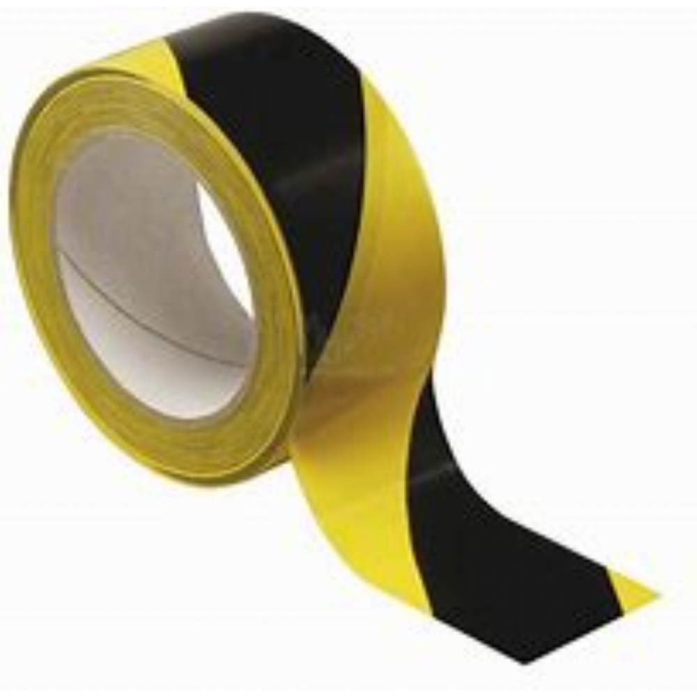 Nastro adesivo segnalatore giallo e nero m.33 x 50 mm ideale per delimitare spazi di lavoro ,macchinari,percorsi ecc ecc.