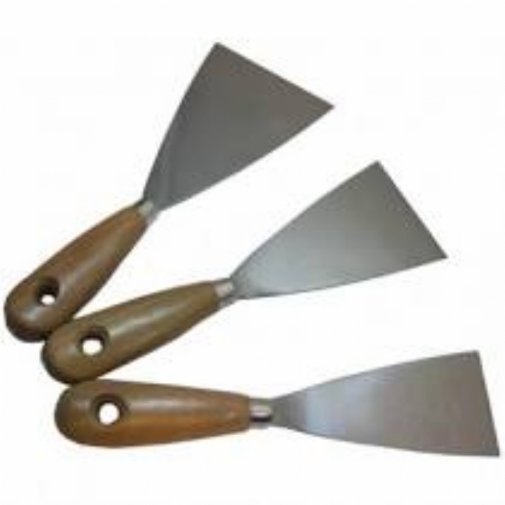 Spatola lama acciaio, manico legno con foro svasato. Disponibile in varie misure: 40- 50- 60- 70- 80- 90- 100- 120 mm.