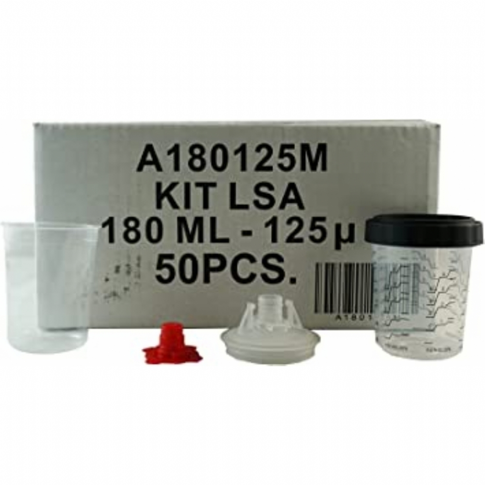Tazze monouso per vernici gelson capacità 180 ml – filtro 125 µm – confezione da 50 pezzi.